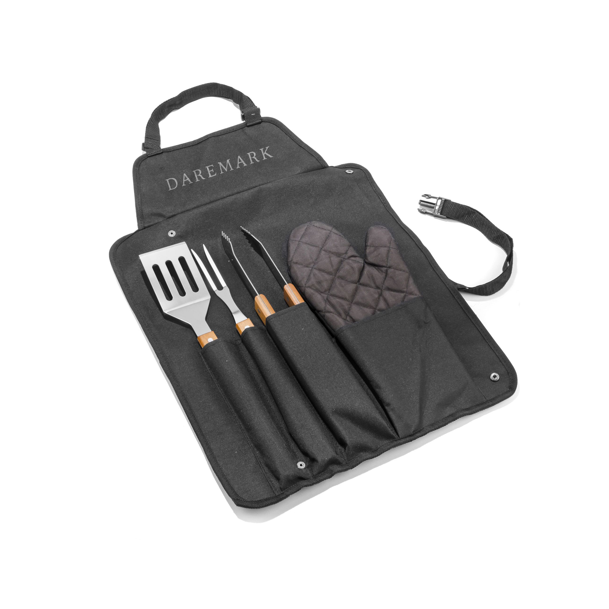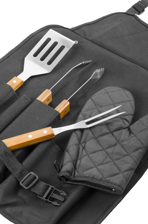The Barbecue Set NANDO is a practical and stylish choice for outdoor cooking enthusiasts. This versatile set includes a glove and apron that also double as a convenient carrying case. Inside, you’ll find essential barbecue tools such as tongs, forks, and spatulas, ensuring you have everything needed for perfect grilling. The apron protects your clothing from stains, while the glove shields your hands from burns. Designed with durability and functionality in mind, it’s an ideal option for gifting as eco corporate accessories or adding to your collection of sustainable office gadgets for team events and outdoor gatherings. Combine style, safety, and sustainability with this all-in-one barbecue set, perfect for both personal use and corporate occasions.