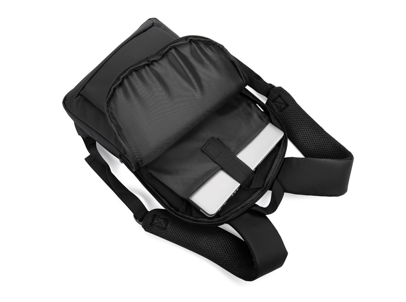 The KIP laptop backpack is a stylish and functional choice for corporate event gift bags and branded gift bags. Made of durable polyester in black, it features a main compartment with a dedicated 15.6″ laptop sleeve, expandable sides, and a small pocket for accessories.