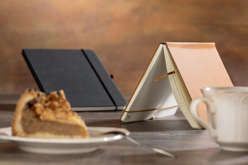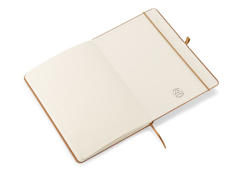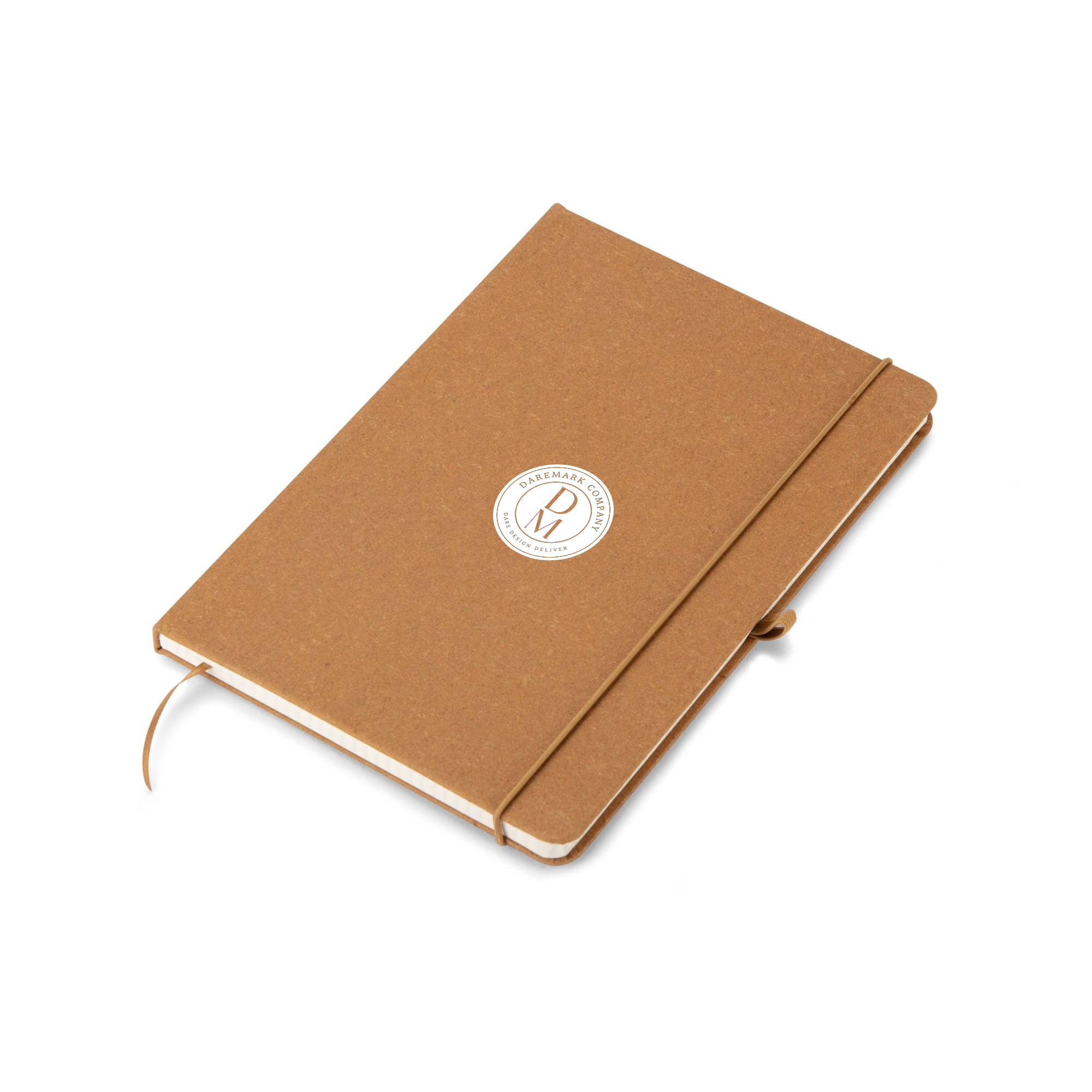 The GLITZO notebook features 80 recycled checkered pages, a compact A5 format, and a hard cover made of recycled PU. This eco-friendly notebook is perfect for those looking for personalized office notebooks in bulk or corporate notebooks bulk order needs. It closes securely with a practical elastic band to keep your notes safe and includes a ribbon bookmark for easy page tracking. Additionally, the notebook offers a convenient space for a pen, making it even more functional for everyday office use.