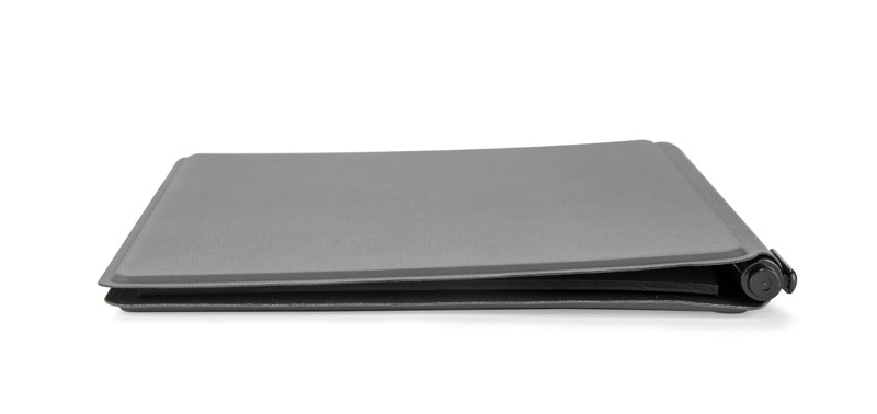 The LIRA A5 notebook features a fold-out dry erase board and 20 sheets of lined 70 gsm A5 paper. Soft-touch surface, 12-month warranty, Cool Gray 11 C color, made of polyurethane and paper.