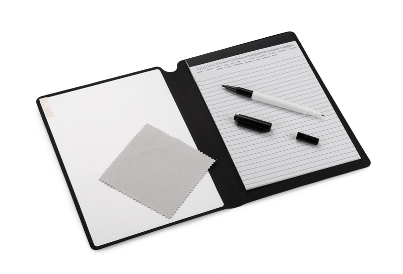 The LIRA A5 dry erase board notebook is an innovative item from a trusted custom notebook supplier, making it a perfect promotional gift for your customers. Its fold-out design adds practicality, featuring a dry-erase board on one side—ideal for jotting down quick ideas—and high-quality lined pages on the other for classic notes. A dry erase marker and cleaning cloth are also included, enhancing its value and functionality.
