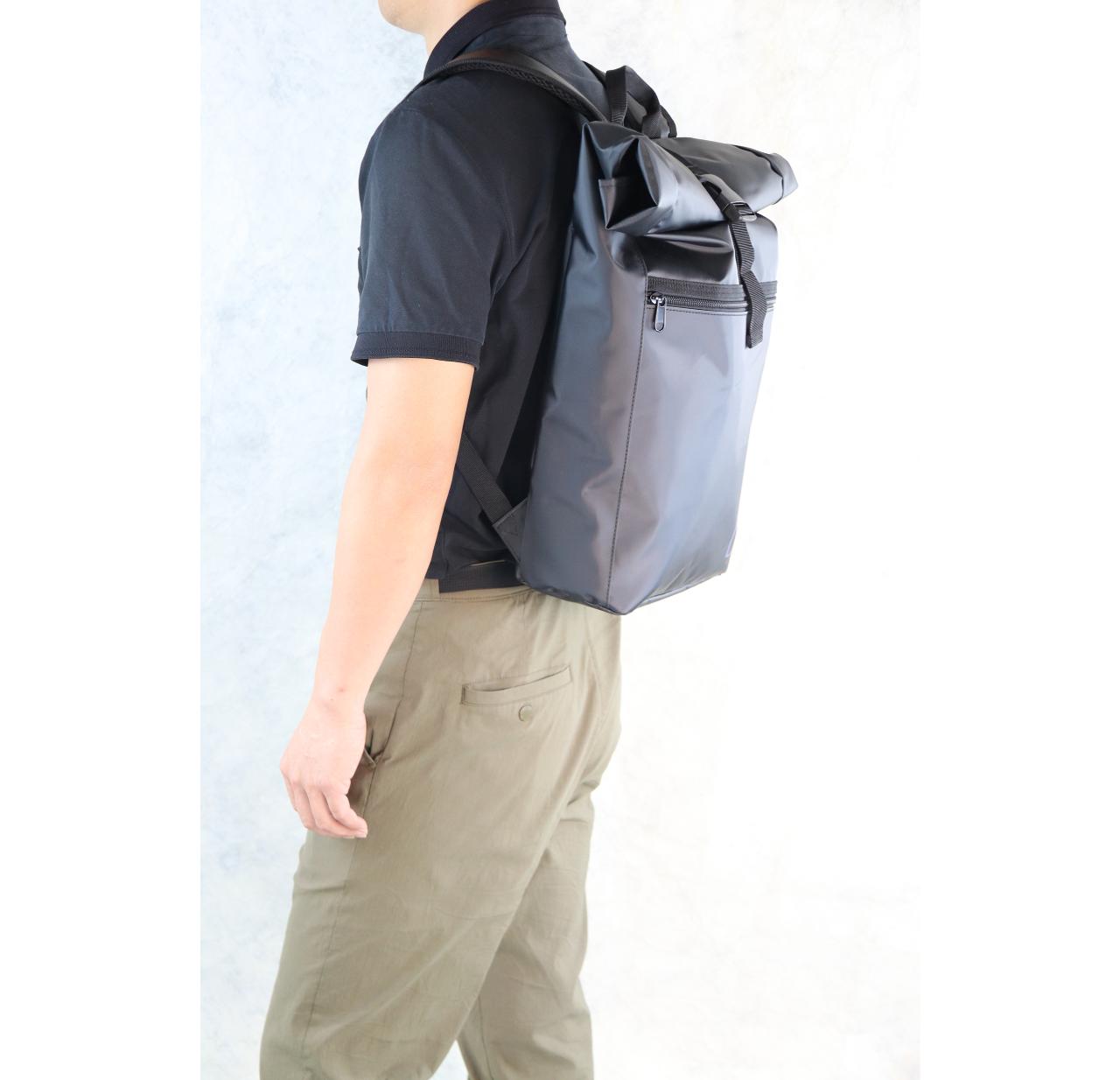 Tough. Minimal. Ready for Anything. Premium backpack built for work and travel, this water-resistant roll-top backpack keeps your office essentials safe and organized. It offers a spacious main compartment and a convenient front zip pocket, combining modern style with everyday functionality.
