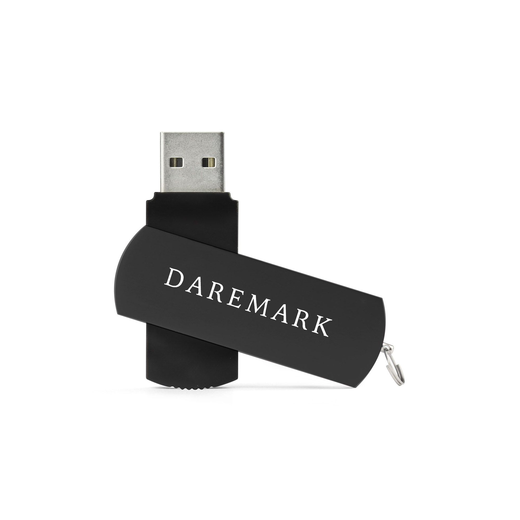 This 8 GB USB flash drive combines metal and plastic in a sleek black design. Compact and durable, it measures 56 x 17 x 9 mm, making it easy to carry or store.
