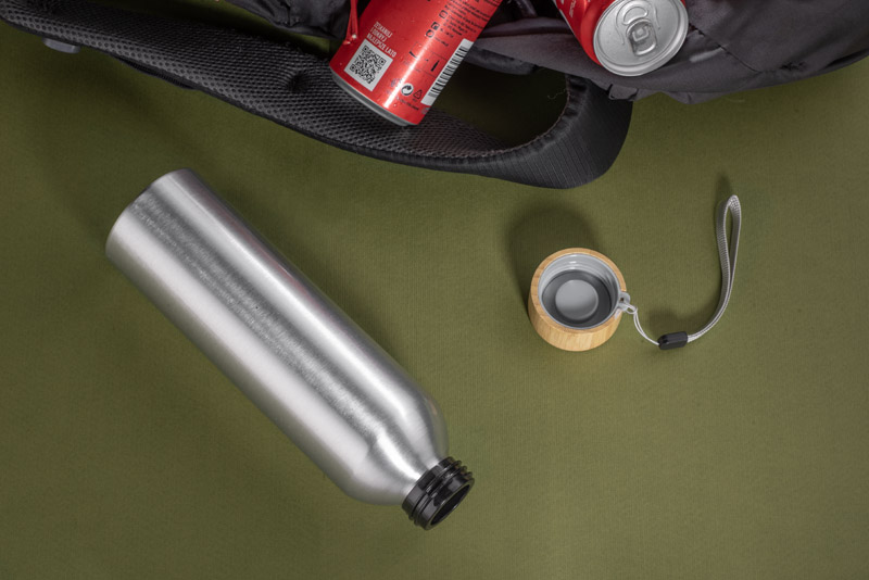The LIAM bottle features a 600 ml capacity and measures ⌀ 66 x 230 mm. Made from durable metal with a bamboo cap, it comes in a stylish silver color (Pantone 00 – silver). It includes a handy handle with a lanyard for easy carrying and is BPA free. Warranty lasts 12 months. Country of origin: China.
